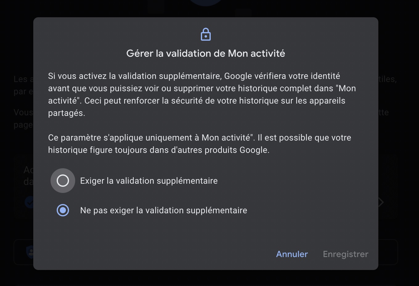 Désormais, pour activer la protection par mot de passe de la page « Mon activité », procédez comme suit :