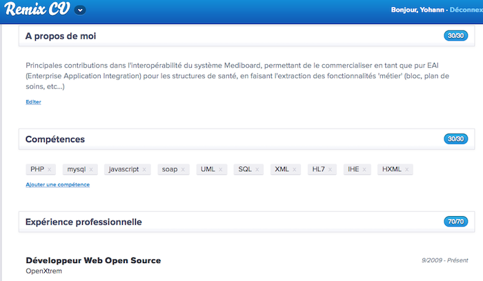 RemixCV, de quoi s'afficher sur la toile de manière simple et efficace - CV créé sur RemixCV
