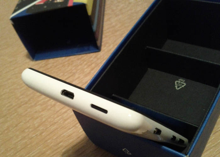Franchement ça lui donne un super look bien frais ! De plus, contrairement à ces anciens modèles, et notamment le Nokia Lumia 900 son prédécesseur, Nokia a revu le placement des ces boutons et prises tout autour de la coque. Maintenant, vous allez trouver la prise jack audio de 3,5 mm en haut du téléphone, et la prise Micro USB se retrouve sur la tranche du dessous, à côté du trou pour le haut-parleur.