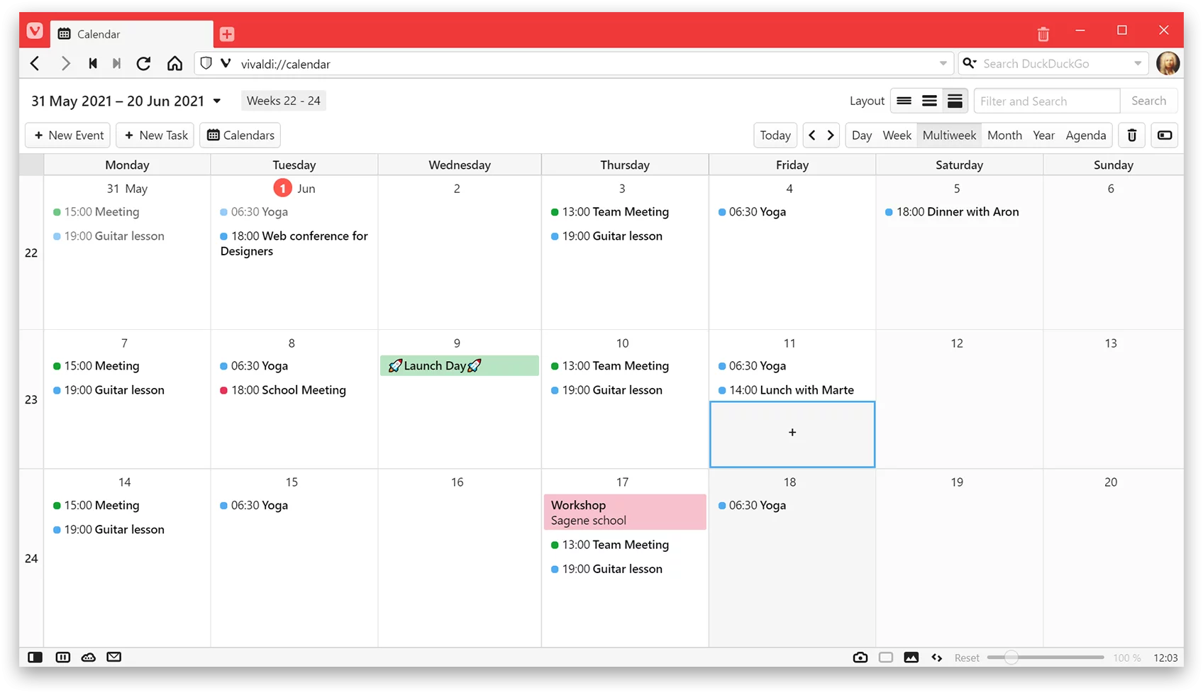 Vivaldi Calender Beta vous permet d’afficher vos rendez-vous à venir dans un onglet du navigateur ou dans un panneau Web qui s’affiche sur le côté de l’écran. Vous pouvez également définir votre calendrier en local uniquement, le synchroniser avec les serveurs de Vivaldi ou ajouter un calendrier Google, CalDAV ou d’autres calendriers Web.