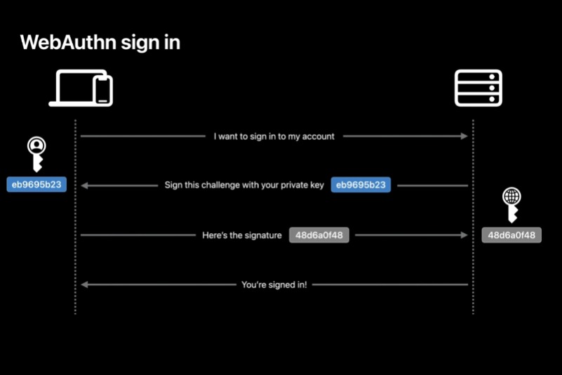 Les Passkeys sont des identifiants WebAuthn qui aident les utilisateurs à se connecter de manière transparente à des applications en utilisant les technologies Face ID ou Touch ID sur les iPhone, Mac et iPad. Ils sont chiffrés de bout en bout et stockés dans le trousseau iCloud. Selon Apple, Passkeys utilise des paires de clés publiques/privées et ne nécessite donc pas de serveurs pour stocker les secrets d’authentification.