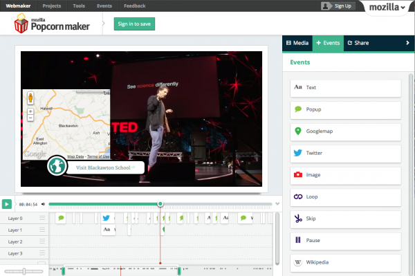 Pour plus d’informations, visitez le site officiel de Popcorn Maker. Pour les développeurs, venez découvrir Popcorn.js, la bibliothèque JavaScript HTML 5 permettant d’intégrer le Web à votre production vidéo.