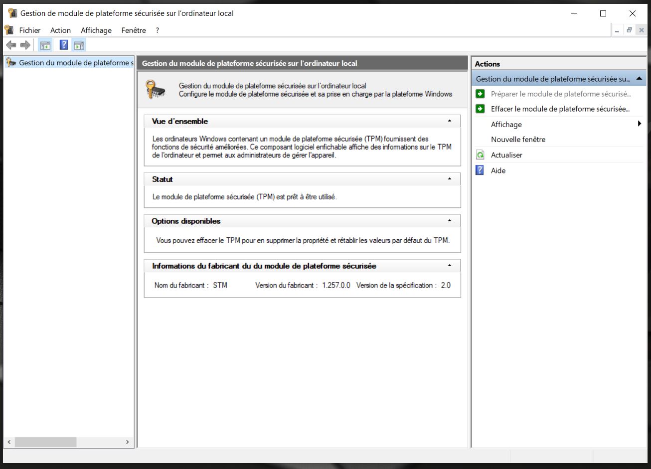 Comme il s’agit d’un module matériel, il est impossible pour les logiciels malveillants de le manipuler par des méthodes logicielles traditionnelles. Par conséquent, la puce TPM devient une « racine de confiance » élevée, basée sur le matériel, à laquelle le système d’exploitation peut toujours faire confiance.