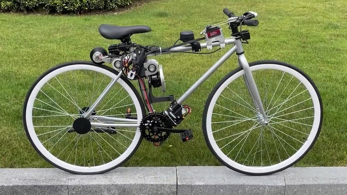 En outre, les ingénieurs ont construit un module de contrôle spécial pour s’assurer que le vélo puisse maintenir son équilibre par lui-même et ne pas tomber. Le module utilise le moment de rotation du disque, qui est le même système que celui utilisé par les satellites artificiels. Un petit capteur de haute précision détecte l’inclinaison et envoie les données au module de contrôle d’attitude, qui veille à ce que le vélo tienne debout tout seul. En outre, un moteur intégré est fixé aux roues arrière. Ce moteur permet au vélo de se déplacer sans pédales.