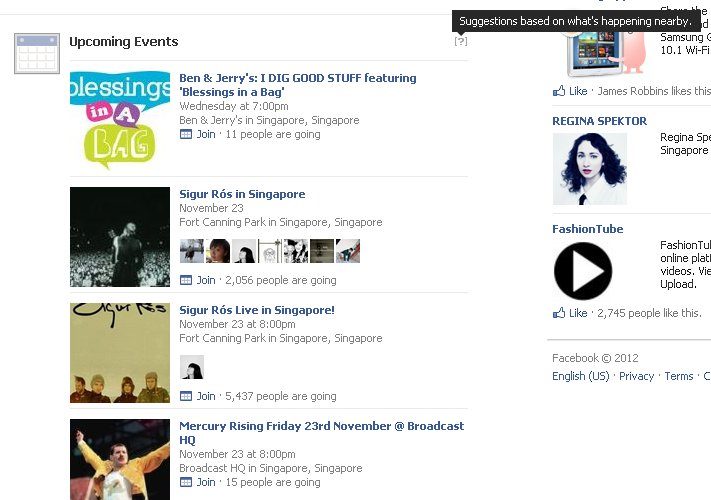 Puisque nous ne pouvons pas compter sur Facebook, le blog All Facebook a trouvé la fonctionnalité concernant les évènements à venir. Celle-ci s’appuie sur les “évènements suggérés” que l’on peut retrouver aujourd’hui depuis la liste des évènements, et la liste des événements proches, que vous ayez été invité ou non.