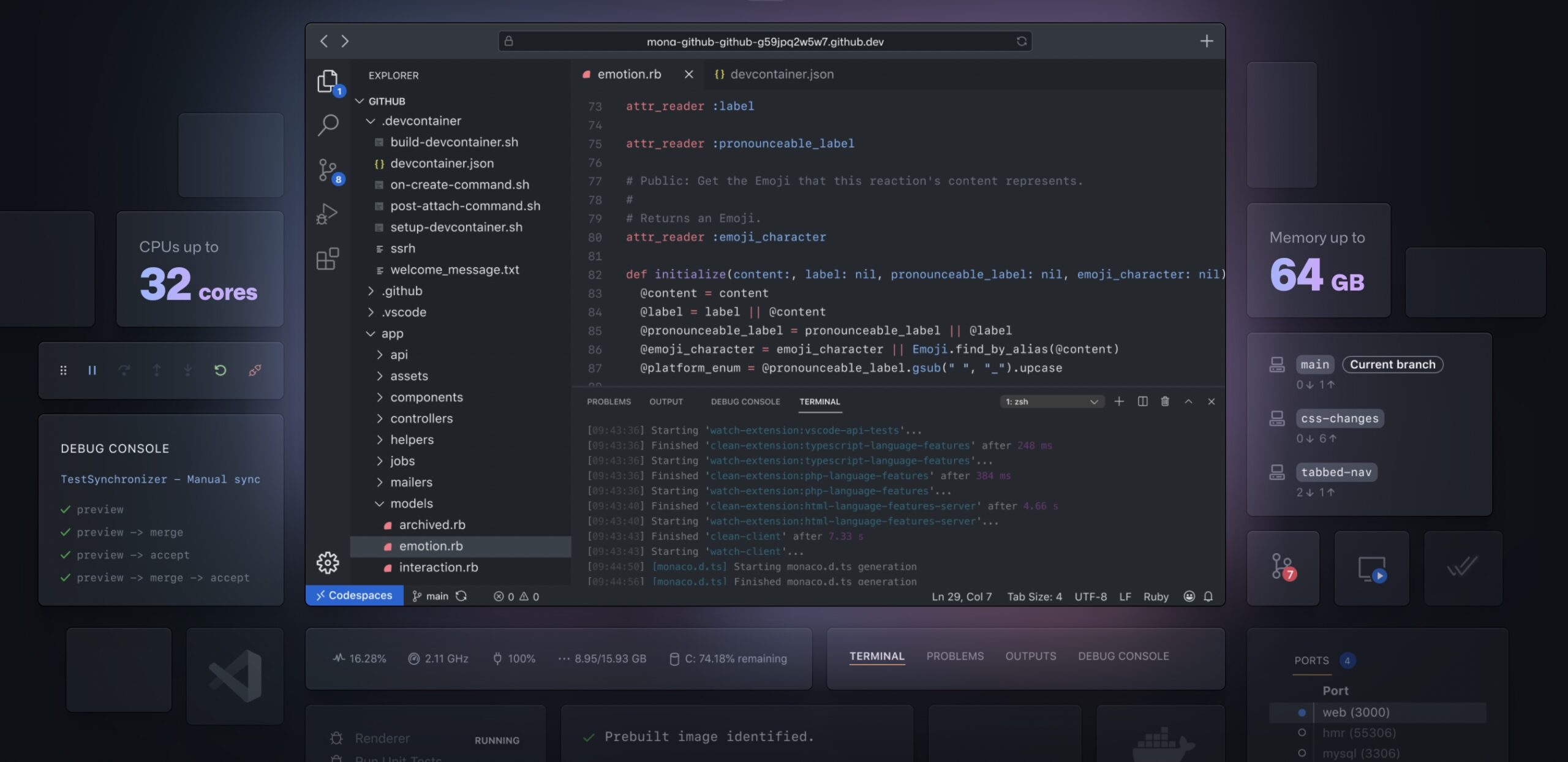 GitHub a déployé son environnement de développement Codespaces basé sur le cloud pour les utilisateurs de GitHub Team et Enterprise Cloud. GitHub Codespaces a été lancé en mai 2021 et est conçu pour équiper les développeurs d’un environnement de développement complet hébergé dans le cloud et basé sur l’éditeur Visual Studio Code de Microsoft, sans dépendre d’environnements de développement intégrés (IDE).