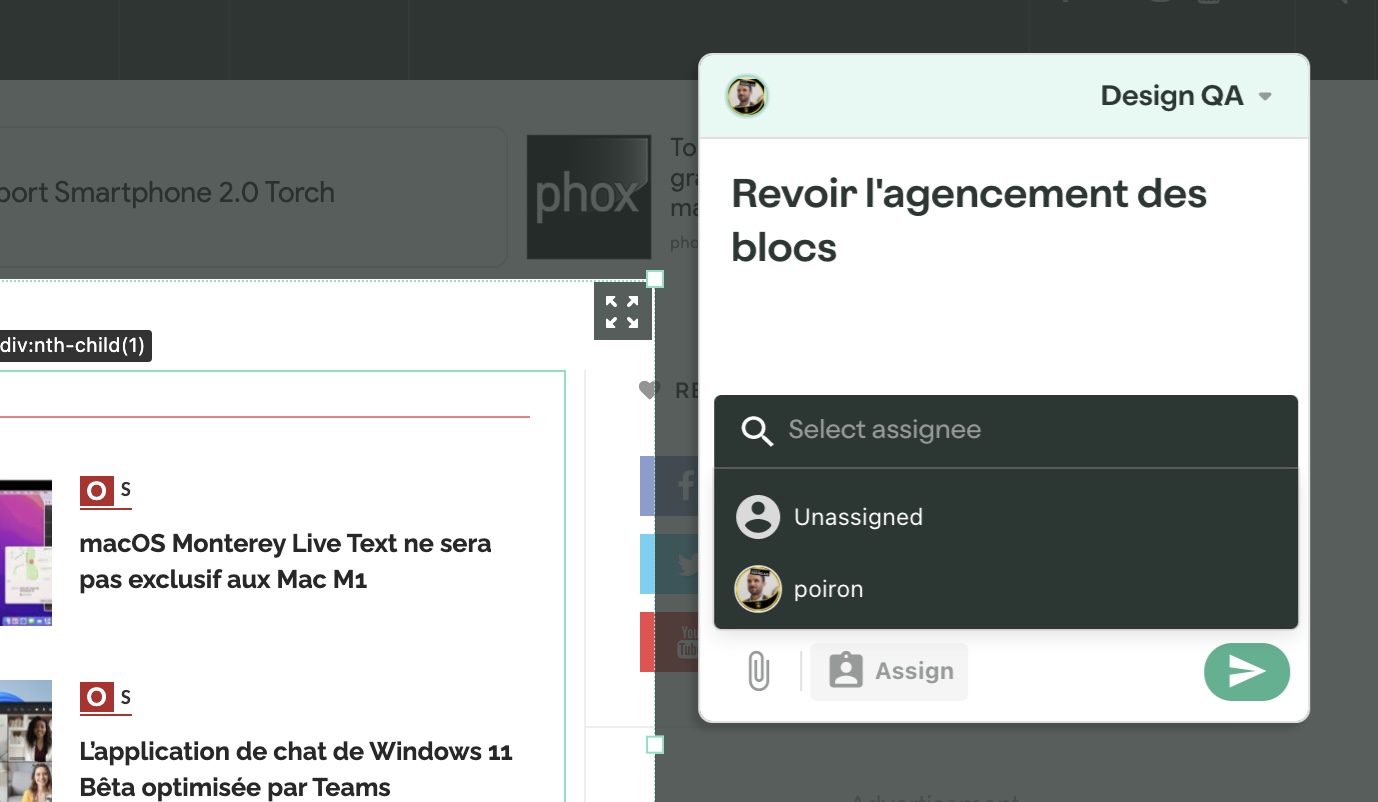 Elle permet aux utilisateurs de laisser des commentaires utiles ou des suggestions ou modifications de conception sur leurs sites Web. Lors des commentaires, l’application capture automatiquement l’écran, les journaux et les informations du navigateur relatives aux bugs. En outre, elle permet aux utilisateurs d’annoter les bugs visuels et les défauts de conception d’un site Web directement sur la page.