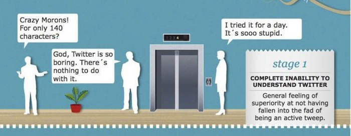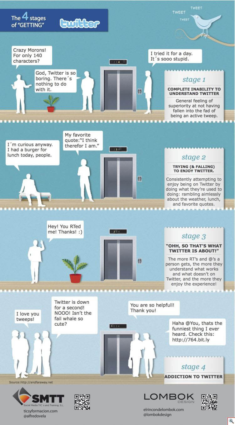 Et bien voici ce que nos amis de SMTT et Lombok ont pensé. Il y a quatre étapes de “comment” adopter Twitter.