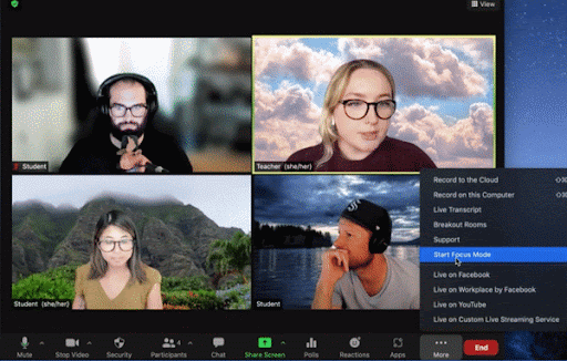 Elle espère y parvenir grâce à un tout nouveau mode Focus, révélé au début du mois. Conçu pour les écoles et les universités, ce mode permet aux participants de ne voir qu’eux-mêmes, l’hôte/les co-animateurs de l’appel et le contenu qu’ils partagent. Les hôtes et co-animateurs peuvent également choisir d’afficher les participants en mode galerie, ce qui leur permet de voir tous les participants simultanément.