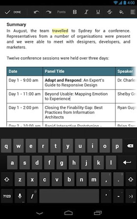 “Vous pouvez changer les polices, redimensionner les colonnes, trier des données, et plus encore”, explique Shrikant Shanbhag, ingénieur logiciel chez Google. Et comme sur votre ordinateur, vous serez en mesure de voir les autres personnes qui modifient en temps réel le document.
