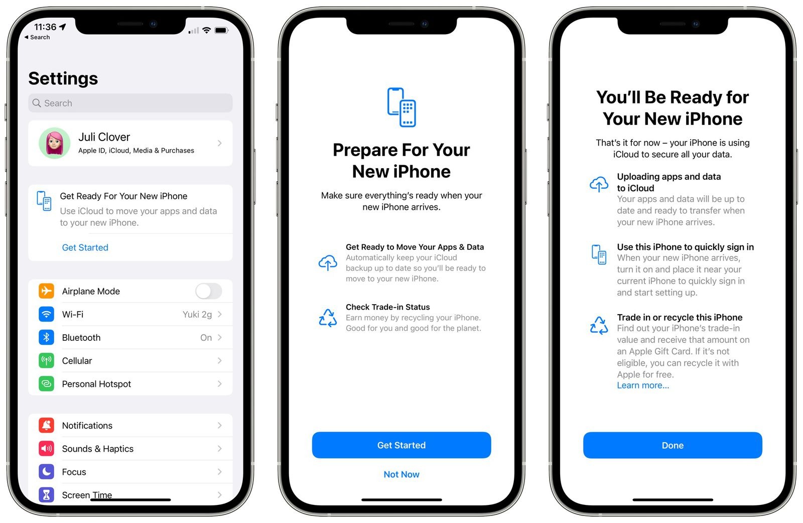 Selon MacRumors, si Apple vous a contacté dans le but de vous aider à effectuer une transition en douceur vers les modèles d’iPhone 2021, la première chose que vous verrez dans le menu Réglages est une invite qui indique « Préparez-vous pour votre nouvel iPhone ».