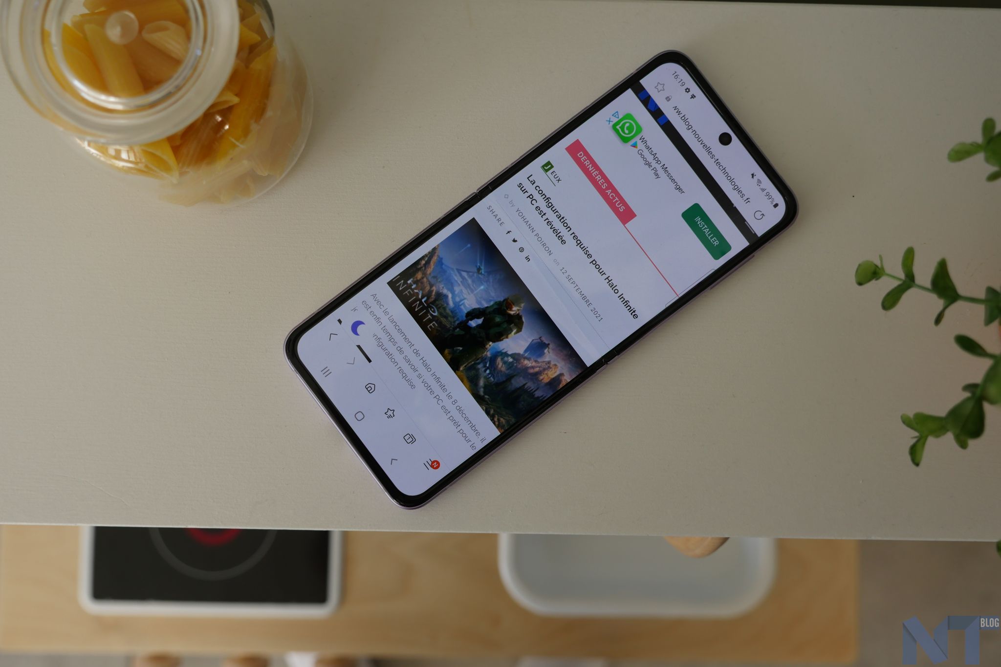 L’autre chose à mentionner ici est le pli. Il n’a pas beaucoup changé : il est toujours là. Contrairement au pli sur le grand frère Galaxy Z Fold 3, celui-ci n’est pas aussi visuellement intrusif, mais comme il est en plein milieu sur le chemin de votre défilement, vous êtes amené à le toucher très souvent et il est perceptible. Comme vous l’aurez compris, à la fin de la journée, c’est un inconvénient qui est lié à un smartphone pliable moderne.