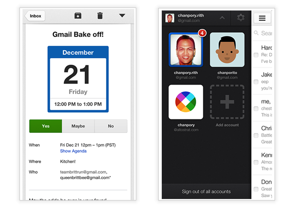 En parlant de Google+, la nouvelle application permet également aux utilisateurs d’éviter de quitter Gmail pour se rendre sur le plateforme Web pour confirmer leur présence à une invitation sur Google Agenda, et visualiser les +1 et les commentaires provenant de Google+ directement à partir de l’application.