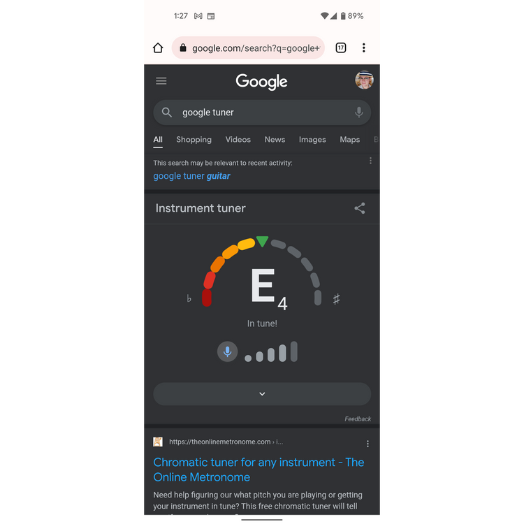 Pour accéder au nouvel accordeur de guitare de Google, il suffit d’ouvrir Google Recherche et de rechercher « Google tuner ». N’oubliez pas que vous devez rechercher « Google tuner » et non « Guitar tuner ». Vous pouvez également utiliser ce lien direct pour accéder à l’accordeur d’instruments chromatiques de Google. L’interface est similaire aux dizaines d’applications d’accordage de guitare déjà disponibles.