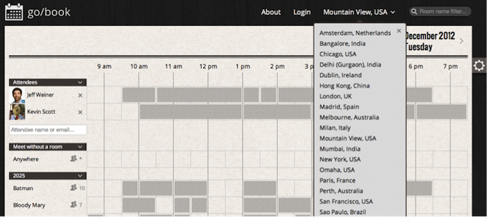 À ce jour, cinq projets ont déjà été approuvés, y compris un outil interne, nommé “go/book”, qui selon Scott, a “véritablement changé la façon dont les réunions sont notées sur LinkedIn”. Ce dernier offre une interface utilisateur intuitive qui superpose la disponibilité de chaque participant à la réunion, à la disponibilité de chaque salle de conférence. De quoi facilement organiser les réunions à travers le monde, puisque LinkedIn dispose tout de même de 26 bureaux à l’international.
