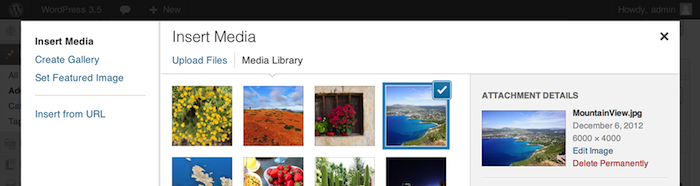 Surnommé “Elvin” en l’honneur du batteur Elvin Jones, qui a joué avec John Coltrane en plus de nombreux autres musiciens, les nouvelles caractéristiques apportées à WordPress 3.5 vont au-delà qu’offrir une nouvelle expérience pour la gestion de vos photos. Pour cette dernière, sachez que l’ajout de fichiers média a été repensé pour aboutir à une toute nouvelle approche, facilitant grandement la mise en ligne et l’insertion dans vos articles, et que la création de galeries d’images est plus rapide grâce à la réorganisation par simple glisser-déposer, la modification directe de la légende, et aux contrôles de mise en page simplifiés.