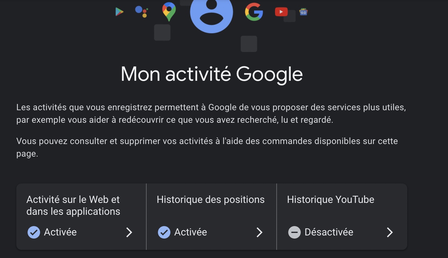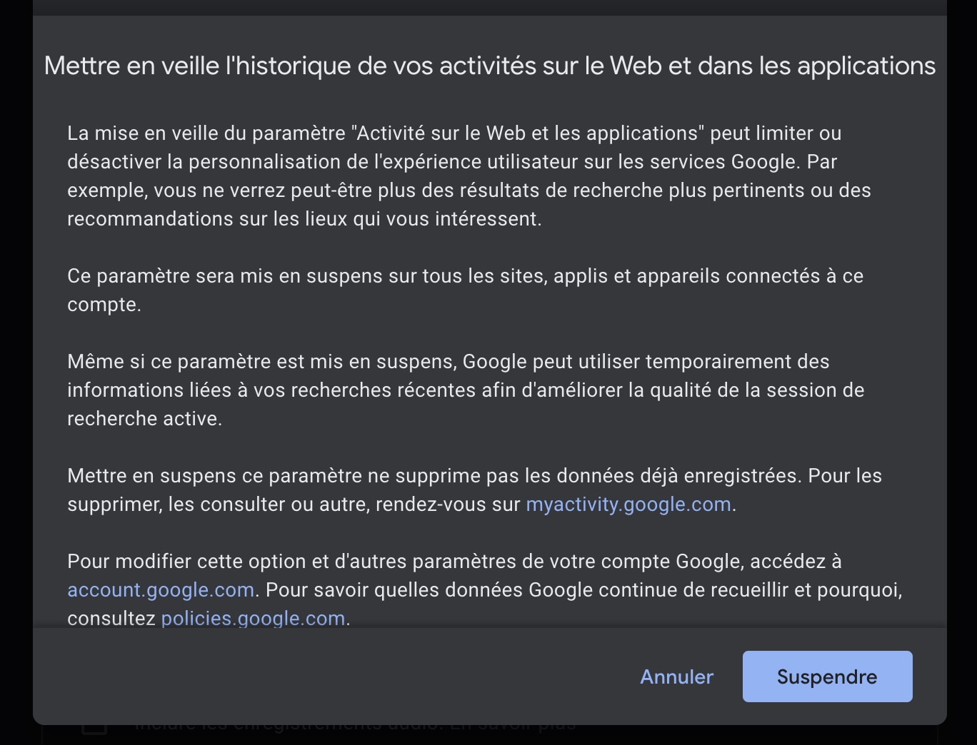 - La mise en pause de l’activité Web et App empêchera Google de vous suivre