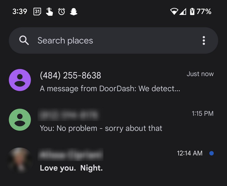 Dans la version bêta la plus récente de Google Messages, le point a été ajusté avec une nuance de bleu différente, mais il est toujours au même endroit, ce qui peut être vu sur le côté droit avec la date et l’horodatage de chaque message non lu dans la boîte de réception.