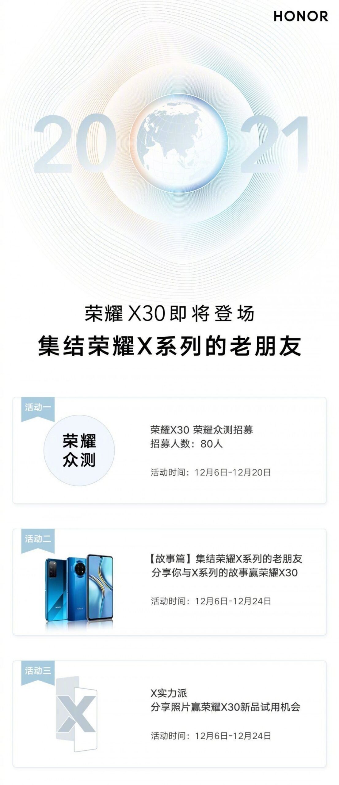 Le dernier modèle de la série X du fabricant chinois de smartphones Honor, le Honor X30, a été officiellement confirmé pour une sortie le 16 décembre.