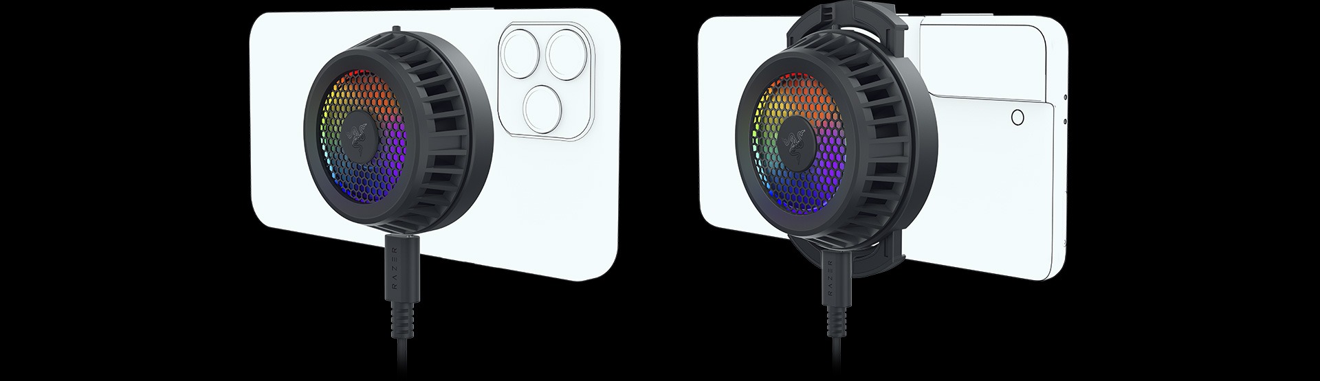 Razer propose deux versions du Phone Cooler Chroma, un modèle compatible MagSafe qui s’enclenche magnétiquement sur les iPhone récents et un modèle avec une « pince universelle » pour les smartphones Android ou les iPhone sans MagSafe mesurant de 67 à 88 mm de long. Cette dernière version est un peu plus volumineuse, mais devrait offrir la même action de refroidissement.