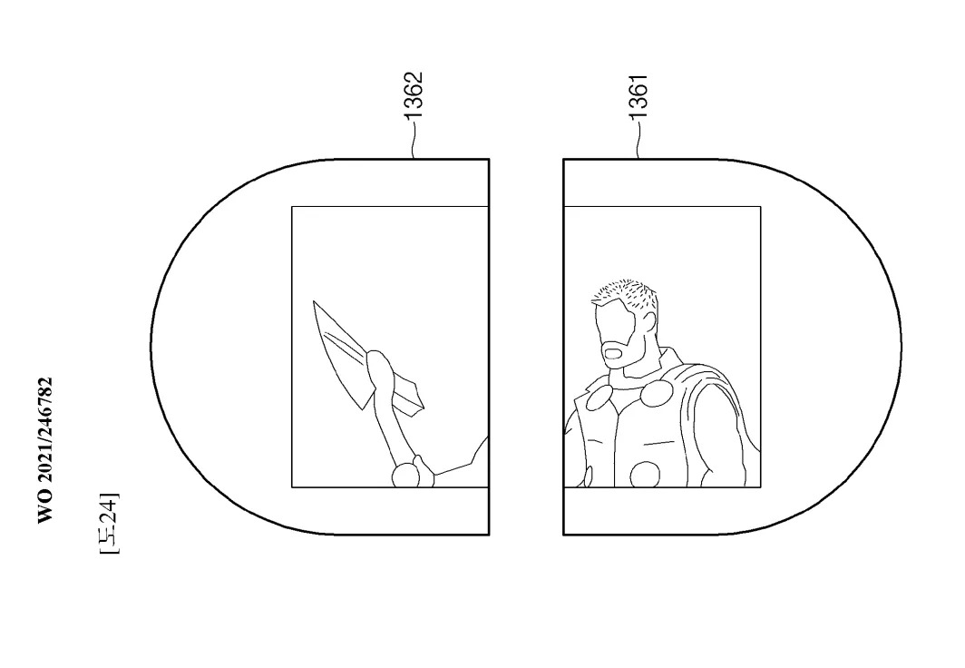 Outre les nouvelles méthodes d’affichage des informations, Samsung semble également penser qu’un écran plus grand pourrait inciter les gens à regarder des vidéos depuis leur poignet. L’un des dessins représente une personne regardant ce qui semble être Thor de Marvel sur la montre. Quant à la caméra, les schémas montrent un design où il est situé au milieu de la montre et est destiné à prendre des photos ou des vidéos.