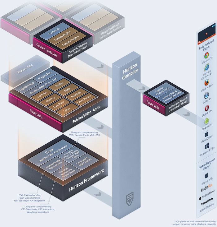 Après la sortie de son propre plugin WordPress et avoir gagné la MIPCube Lab startup competition, l’éditeur de SublimeVideo, Jilion, est de retour pour lancer son propre framework SublimeVideo Horizon, vous permettant de créer des lecteurs vidéo HTML5 entièrement personnalisables, grâce à la possibilité de tirer profit des vidéos présentes sur YouTube !