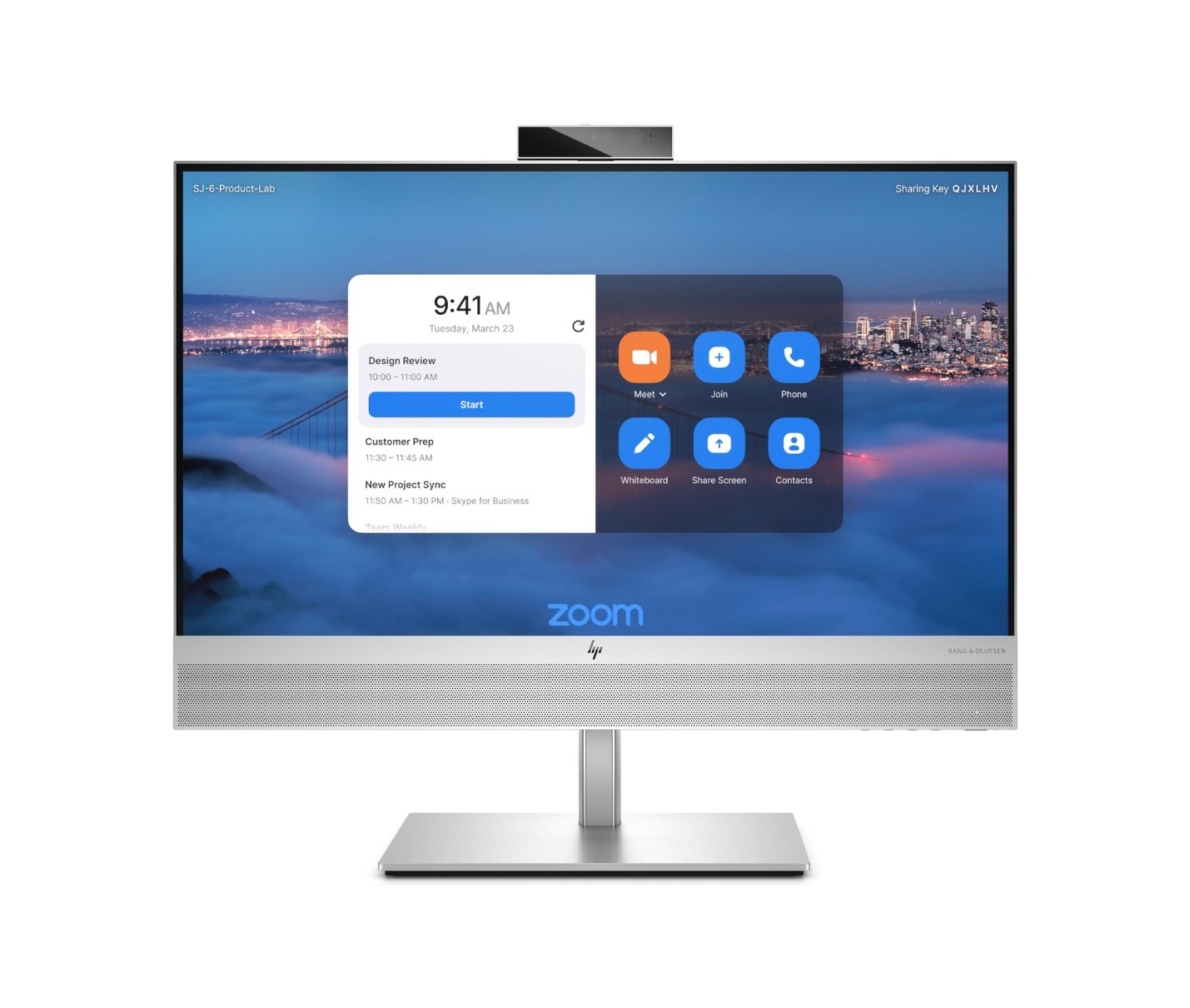 Tout d’abord, HP a dévoilé son tout nouveau PC de conférence Presence All-in-One avec Zoom Rooms. Il est disponible en deux tailles : 23,8 pouces et 27 pouces. Il est alimenté par un processeur Intel de 12e génération et est doté de la technologie Presence de HP. Il offre 16 Go de mémoire vive DDR4 et des graphiques Intel UHD intégrés. Il dispose d’un stockage SSD embarqué de 256 Go qui est extensible. Pour les appels vidéo, il est doté d’une caméra de 5 mégapixels. Il fonctionne sous Windows 11 et, bien sûr, est livré avec le logiciel Zoom Rooms préinstallé.