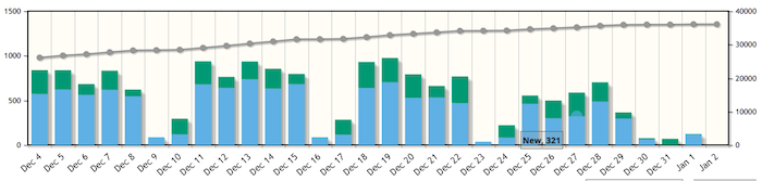 Selon le décompte total, le store dispose aujourd’hui de 35 167 applications, avec une augmentation de 14 557 applications au cours des 35 derniers jours, indiquant que Windows 8 fait croître les applications de sa plateforme à un rythme d’environ 415 par jour. A titre de comparaison, début novembre, Windows 8 recevait aux alentours de 362 demandes par jour.