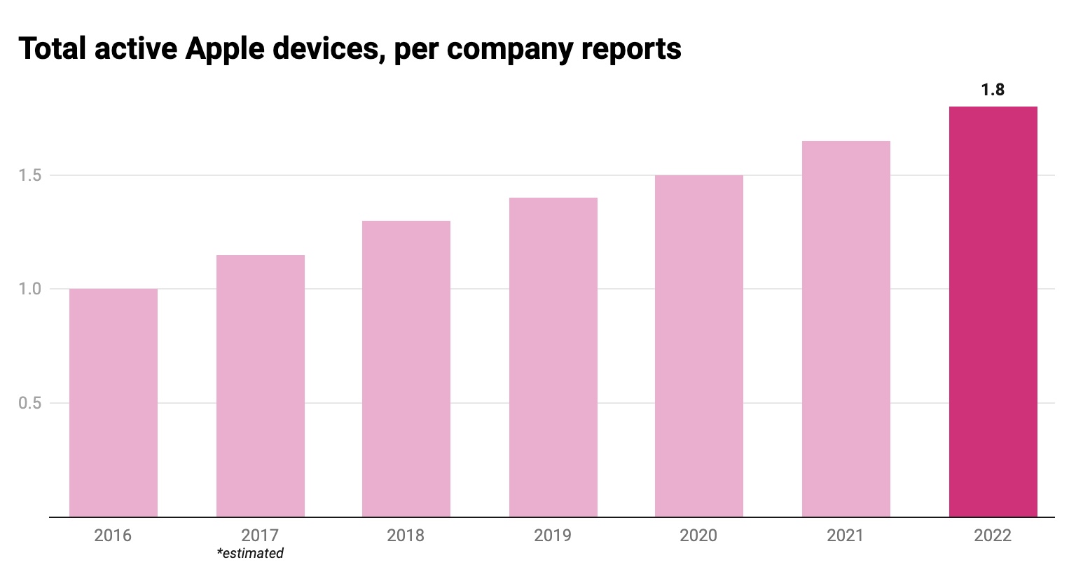 Ce n’est pas pour rien qu’Apple est l’une des entreprises les plus précieuses au monde. Le géant de Cupertino fabrique une variété de dispositifs, allant des iPhone, iPad et Mac aux Apple Watch et ordinateurs de bureau, qui sont utilisés par une majorité de la population mondiale. Lors d’une récente réunion avec les investisseurs, le PDG de la société, Tim Cook, a révélé qu’Apple compte désormais 1,8 milliard d’appareils actifs dans le monde.