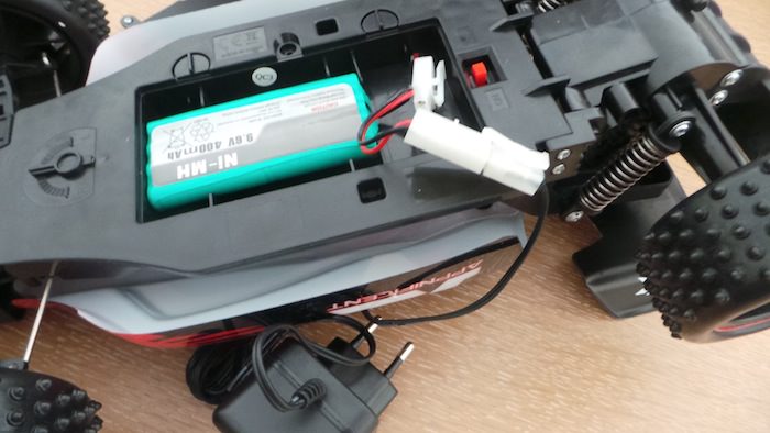 Concernant le rechargement, celle-ci se fera à l’aide d’un connecteur qui viendra se brancher sur secteur et qui pourra être réintroduit dans la voiture. Selon quelques tests, on peut tenir plus d’une demi-heure avec. En revanche, petit point négatif, afin de recharger la batterie du bolide on est obligé de dévisser la plage du dessous ce qui peut-être contraignant à la longue.