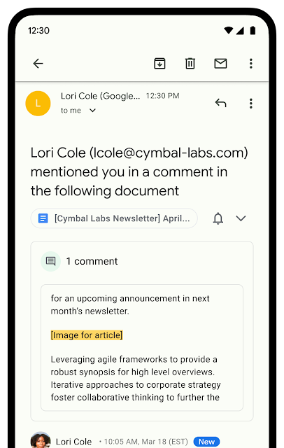 Avec le nouveau changement de notification, Google inclut désormais l’adresse électronique complète du collaborateur dans sa notification lorsque vous recevez une @mention, ce qui facilite l’identification en toute sécurité de votre collaborateur et de vos contacts de confiance.