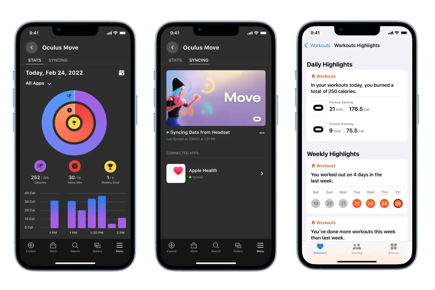 Meta fait un autre grand pas en avant dans le domaine du fitness VR. À partir du mois d’avril, l’entreprise permettra de voir les statistiques de fitness VR d’Oculus Move à d’autres endroits que dans l’application VR du casque Quest et Quest 2. Vous pourrez choisir de voir les mesures (calories brûlées, minutes passées à vous entraîner et vos objectifs de fitness VR) dans l’application mobile Oculus pour iOS et Android.