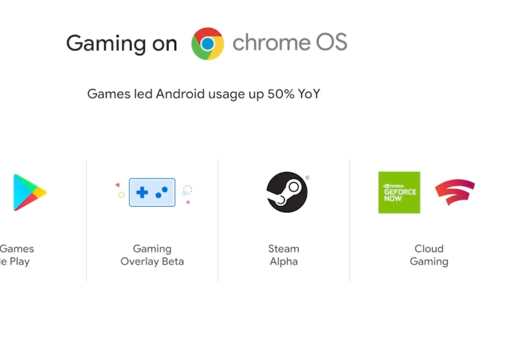 Au-delà de Steam, Google a également déclaré qu’elle publierait la version bêta publique de son nouveau Chrome OS Gaming Overlay plus tard en 2022, bien que seuls certains jeux le prennent en charge à ce moment-là. Grâce à elle, les propriétaires de Chromebook pourront jouer à des jeux Android « avec des configurations de souris et de clavier pilotées par l’utilisateur » sans que les développeurs des titres aient à effectuer des modifications au préalable.