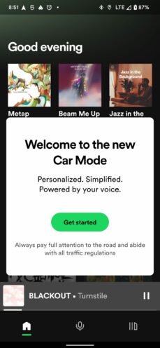 9to5Google rapporte que Spotify est en train de déployer le Car Mode, qui ressemble à un Car View redessiné et légèrement retravaillé qui a été abandonné en novembre dernier. Le nouveau Car Mode introduit une vue à trois onglets en bas, affichant l’écran d’accueil, l’assistant vocal et les listes de lecture. La page d’accueil est moins dense, et elle apparaît beaucoup plus grande que la vue standard, offrant une navigation et un accès facile.