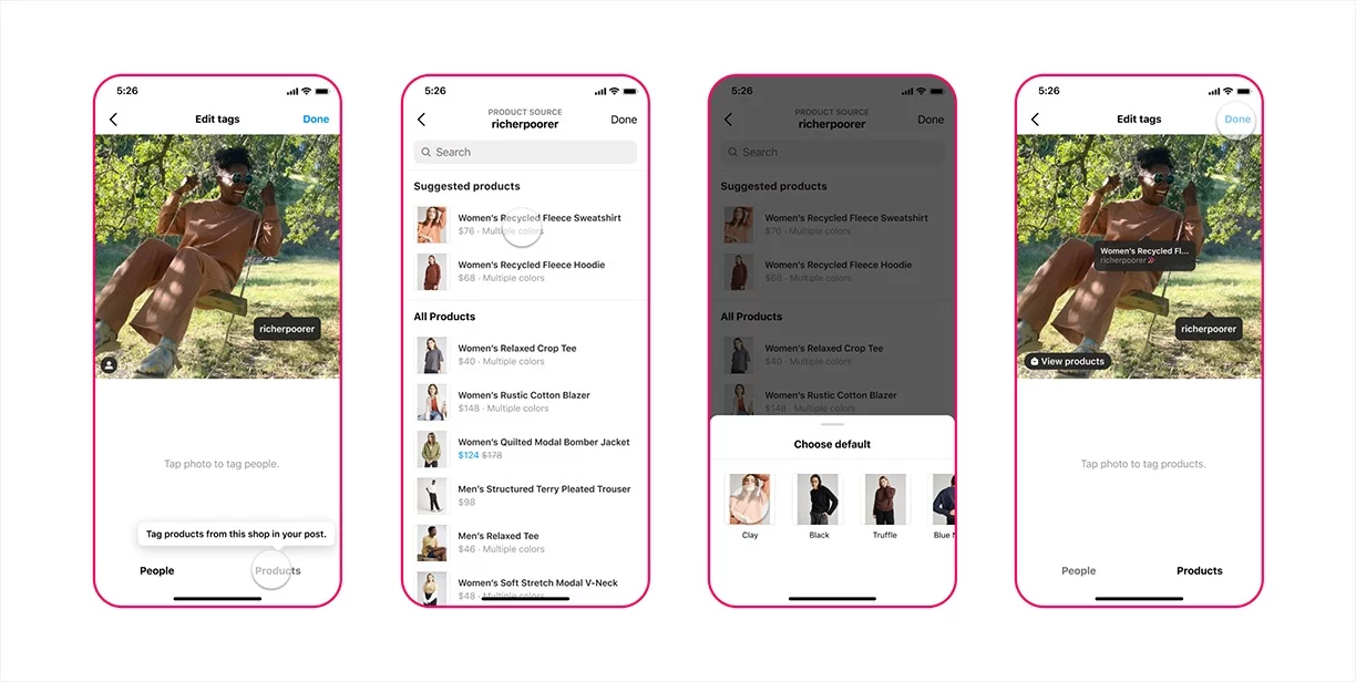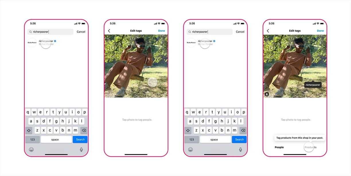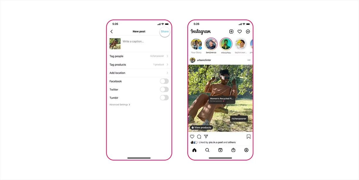 Ainsi, même avec votre compte personnel (sans marque), vos selfies et autres photos peuvent désormais comporter des tags de produits que vos abonnés peuvent utiliser pour en savoir plus sur le produit et l’acheter (dans l’application ou depuis une page de détail du produit).