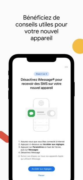 Inutile de dire que iMessage sera désactivé, mais Google conseille aux utilisateurs de désactiver cette application avant d’entamer la bascule afin d’être sûrs de recevoir les SMS standard sur votre appareil Android.