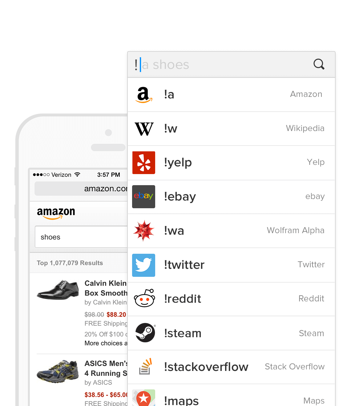 Mais DuckDuckGo a des bangs. Les bangs vous permettent de rechercher des sites tiers directement depuis DuckDuckGo. Ainsi, si vous souhaitez rechercher un certain site Web, les bangs vous permettront de taper ! suivi du terme recherché. De plus, la recherche d’un site sur DuckDuckGo à l’aide de l’un des milliers de bangs disponibles vous amène directement sur le site, plutôt que dans les résultats du moteur de recherche.