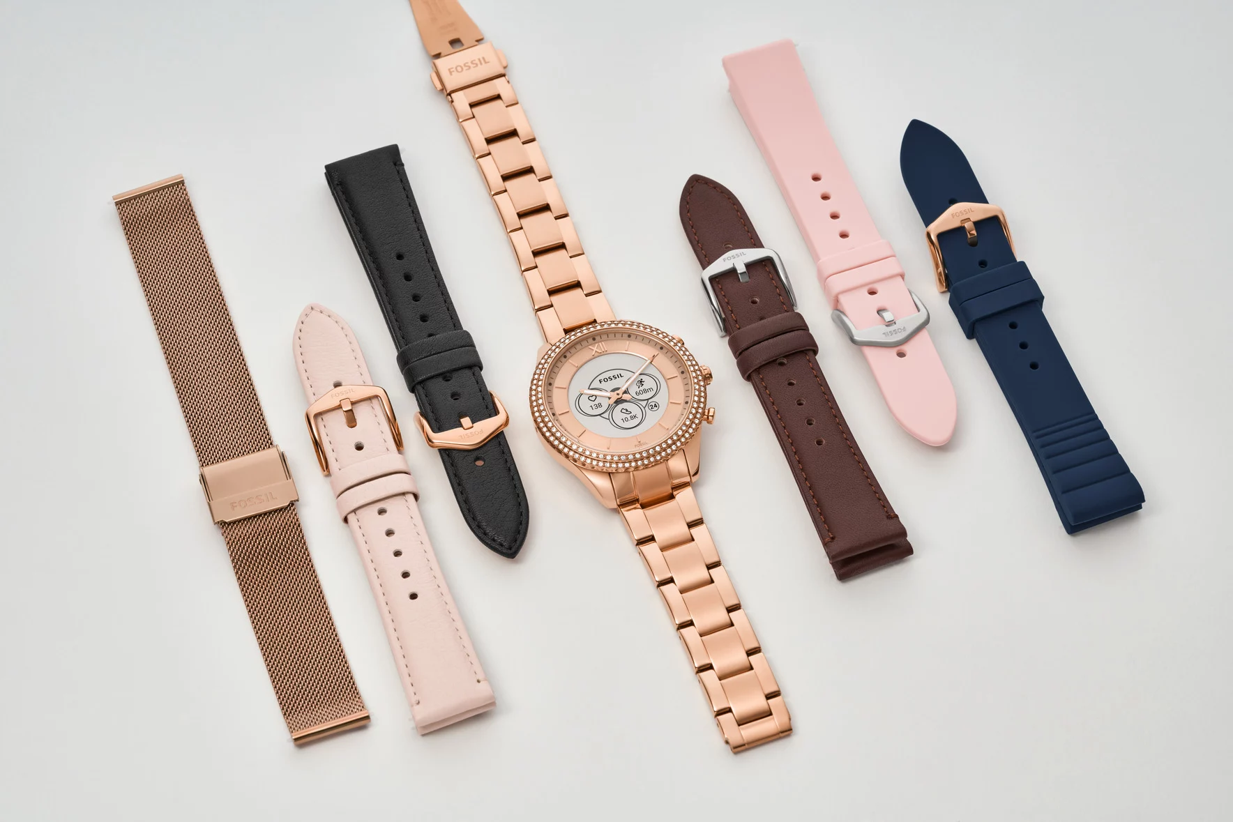 La Stella Gen 6 Hybrid quant à elle possède un cadran de 40,5 mm avec une lunette en forme de pièce de monnaie, 150 cristaux posés à la main sur la plupart des modèles et des aiguilles mécaniques biseautées. Elle est disponible dans les coloris doré rose, argenté et bicolore, avec un bracelet à 3 maillons, un bracelet en maille milanaise, un bracelet en cuir ou un bracelet en silicone. La montre est dotée d’un écran rétroéclairé à échelle de gris et de cadrans personnalisables.