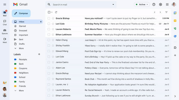 Gmail a obtenu sa dernière refonte, qui est basée sur Material Design 3. Ce changement inclut désormais des sections dédiées aux apps Chat, Spaces et Meet pour ce que Google appelle une « vue unifiée ».