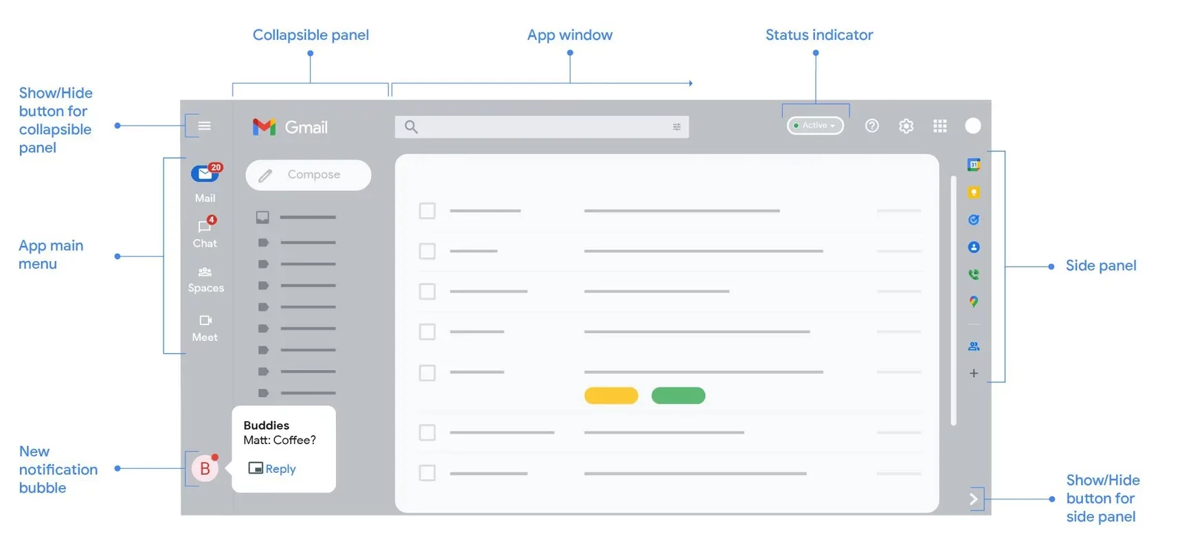 Quant au nouveau design de Gmail, il a commencé à être déployé et devrait être disponible dans les semaines à venir. Vous pourrez l’activer depuis la nouvelle option de configuration visuelle dans les paramètres et vous pourrez également choisir de conserver le design existant si cela vous convient ! Si vous n’avez pas activé la fonction « Chat », vous obtiendrez toujours la nouvelle apparence, mais dans une vue uniquement Gmail par défaut. Si vous n’utilisez pas certaines ou toutes ces applications, vous pouvez les désactiver ou les activer dans le menu « Paramètres rapides ».
