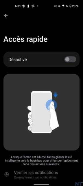 Vous pouvez également activer la fonction « glisser pour vérifier les notifications », et cela peut éviter toute gymnastique de la main. Mais là encore, l’appareil étant suffisamment petit, cette fonctionnalité n’est pas nécessaire et peut conduire à des activations fantômes lorsque vous saisissez le smartphone. Néanmoins, mieux vaut l’avoir et ne pas en avoir besoin que l’inverse. Il y a une section d’astuces assez sympa et complète pour vous montrer toutes les choses merveilleuses que vous pouvez faire avec votre nouveau Zenfone 9, de sorte que vous ne passerez pas à côté d’une fonctionnalité cool par erreur.