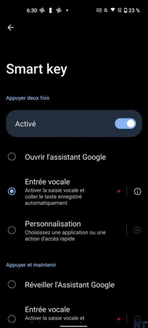 Vous pouvez utiliser un couple de gestes intelligents, des poussées de boutons avec cette touche intelligente. Vous pouvez appuyer deux fois sur cette touche pour activer les services vocaux de Google, et la personnaliser pour ouvrir Google Assistant ou une application de votre choix.