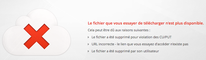 Effectivement, par exemple j’ai eu la possibilité de lister différents titres de Coldplay. Dès que je clique sur l’un des liens je me retrouve avec le message suivant sur Mega : “Le fichier que vous essayez de télécharger n’est plus disponible”.
