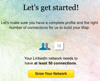 Malheureusement me concernant j’ai eu une première difficulté : mon profil n’était que 50% complet alors qu’il doit être de 75% avant qu’une carte puisse être générée. Alors une petite tape sur mes doigts pour compléter mon profil, et une façon astucieuse de LinkedIn pour collecter plus de données vous concernant. (Oui, je sais que je suis cynique).