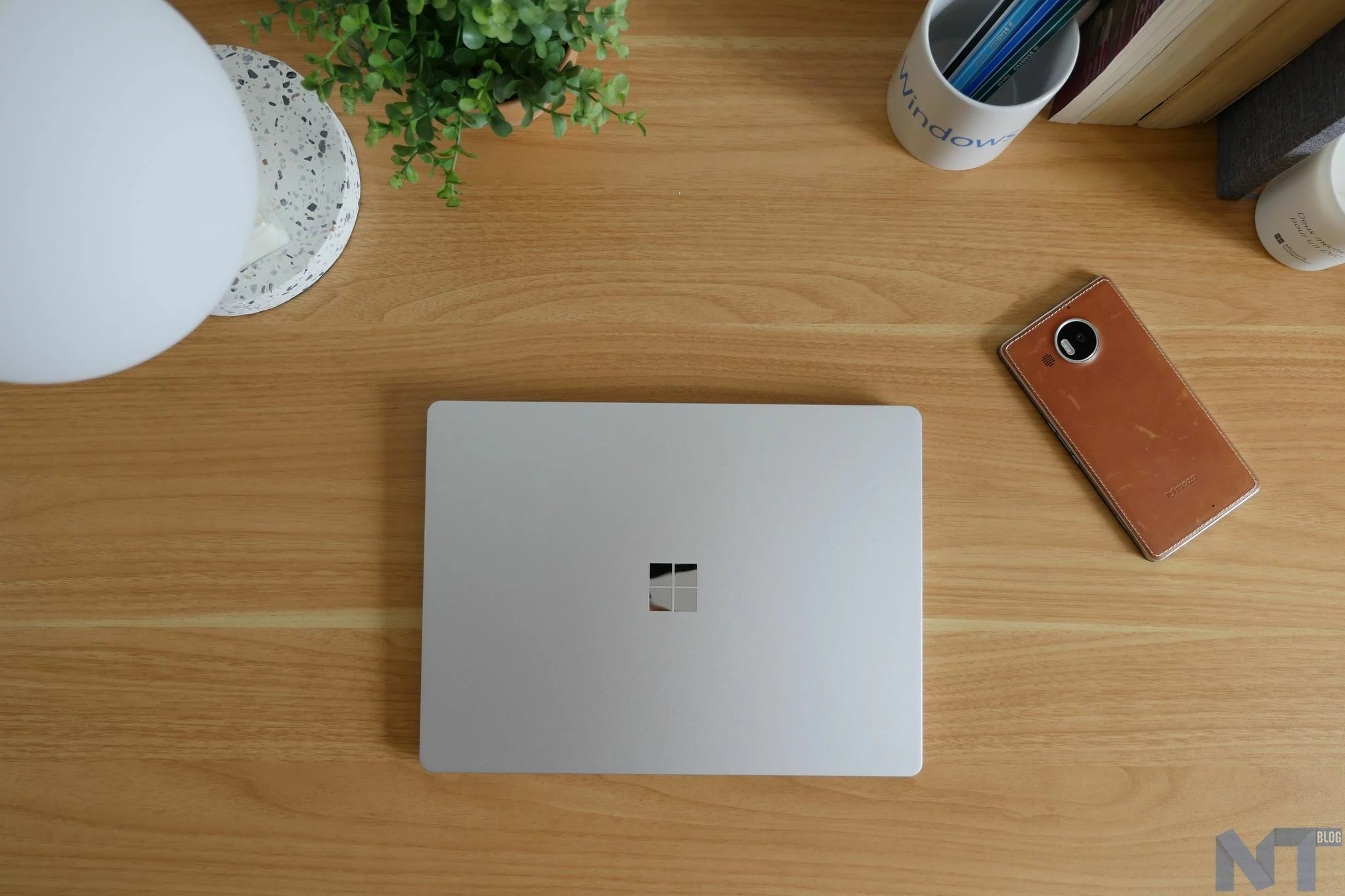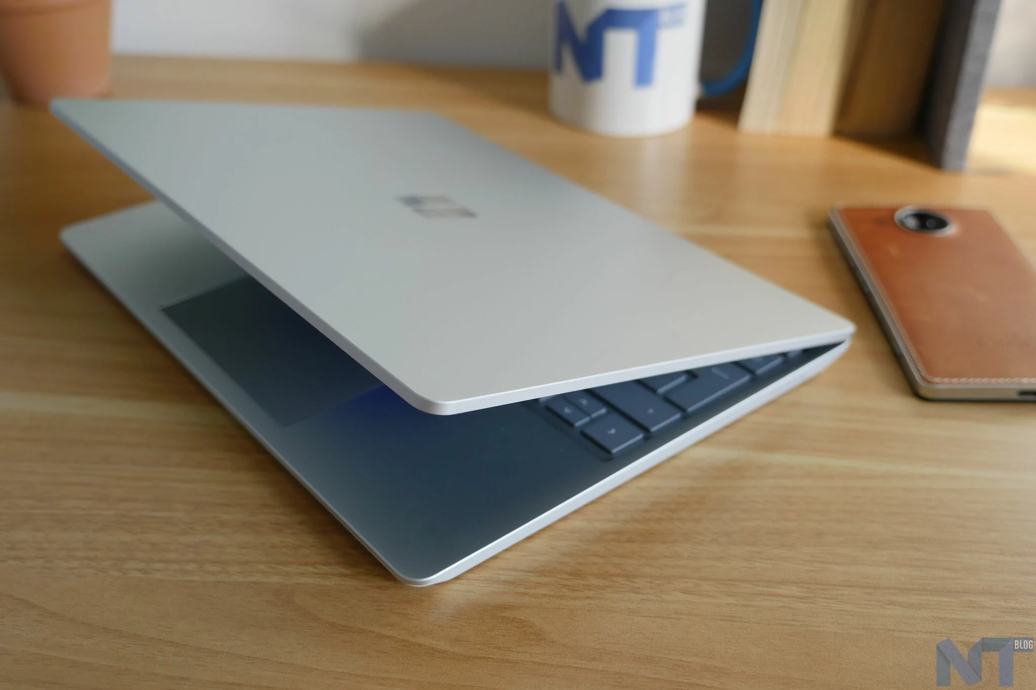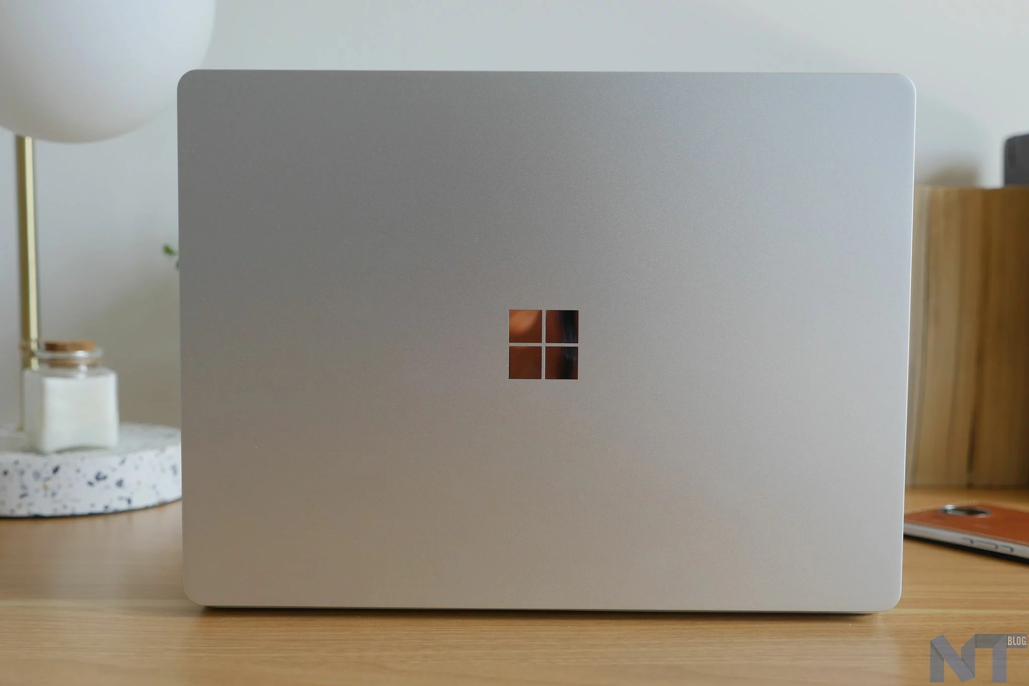 L’élégante finition en aluminium est désormais disponible en quatre finitions, les finitions existantes Bleu Glacier, Sable et Platine étant rejointes par une nouvelle option Vert Sauge. Aucune de ces finitions n’est trop voyante ou accrocheuse — c’est une façon subtile de s’exprimer. Le modèle Platinum que j’ai testé est sans doute le moins intéressant des quatre, mais ce design minimaliste me plaît beaucoup. Le logo Microsoft réfléchissant au dos est la seule zone (à part l’écran) qui attire les traces de doigts, mais vous ne le verrez pas très souvent.