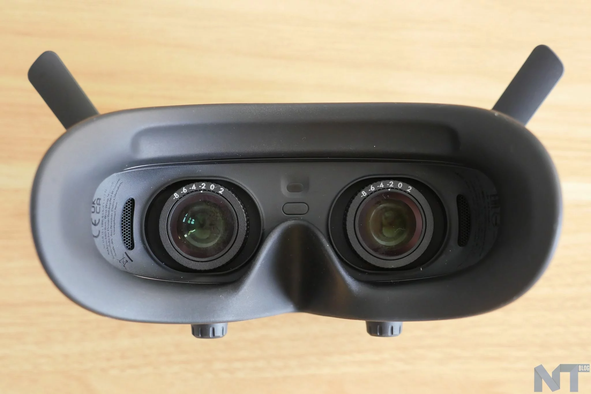 Autre bonne nouvelle, les DJI Goggles 2 prennent en charge le réglage de la dioptrie, ce qui est une très bonne nouvelle pour les utilisateurs qui portent des lunettes. De nombreuses lunettes VR et dispositifs montés sur la tête ne prennent pas en charge le réglage dioptrique. Les utilisateurs myopes doivent soit porter des lunettes et ensuite porter le dispositif monté sur la tête, soit acheter des lentilles myopiques séparément, ce qui est très peu pratique. Cette fois, les DJI Goggles 2 disposent d’un bouton sous les yeux, qui peut être utilisé pour un réglage précis de l’écart pupillaire et de la dioptrie. Les utilisateurs myopes peuvent enfin l’utiliser sans porter de lunettes de myopie.