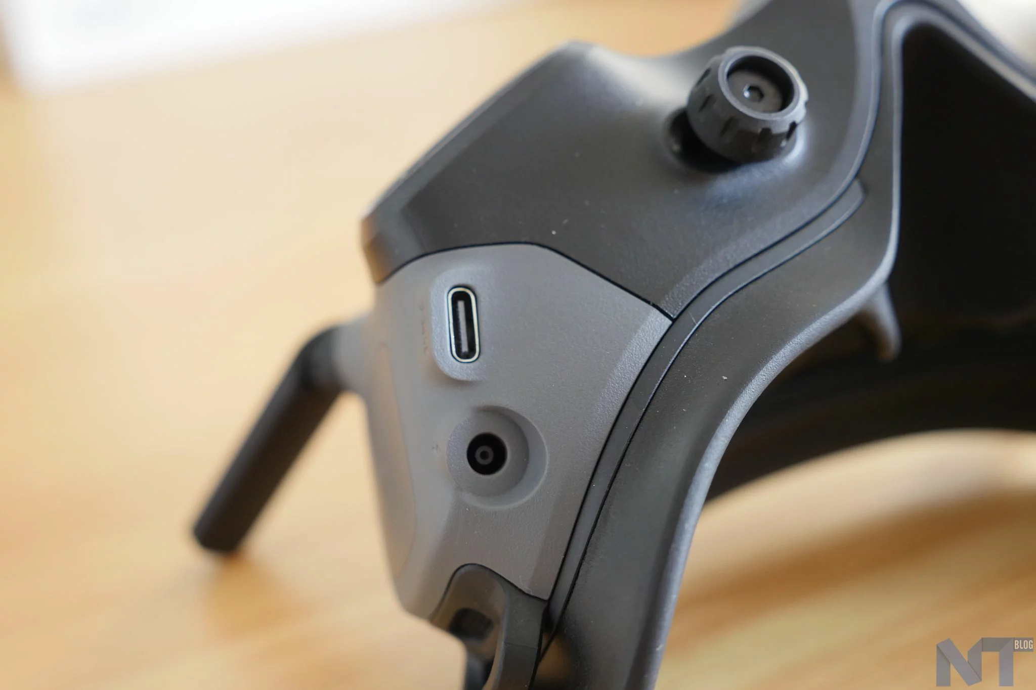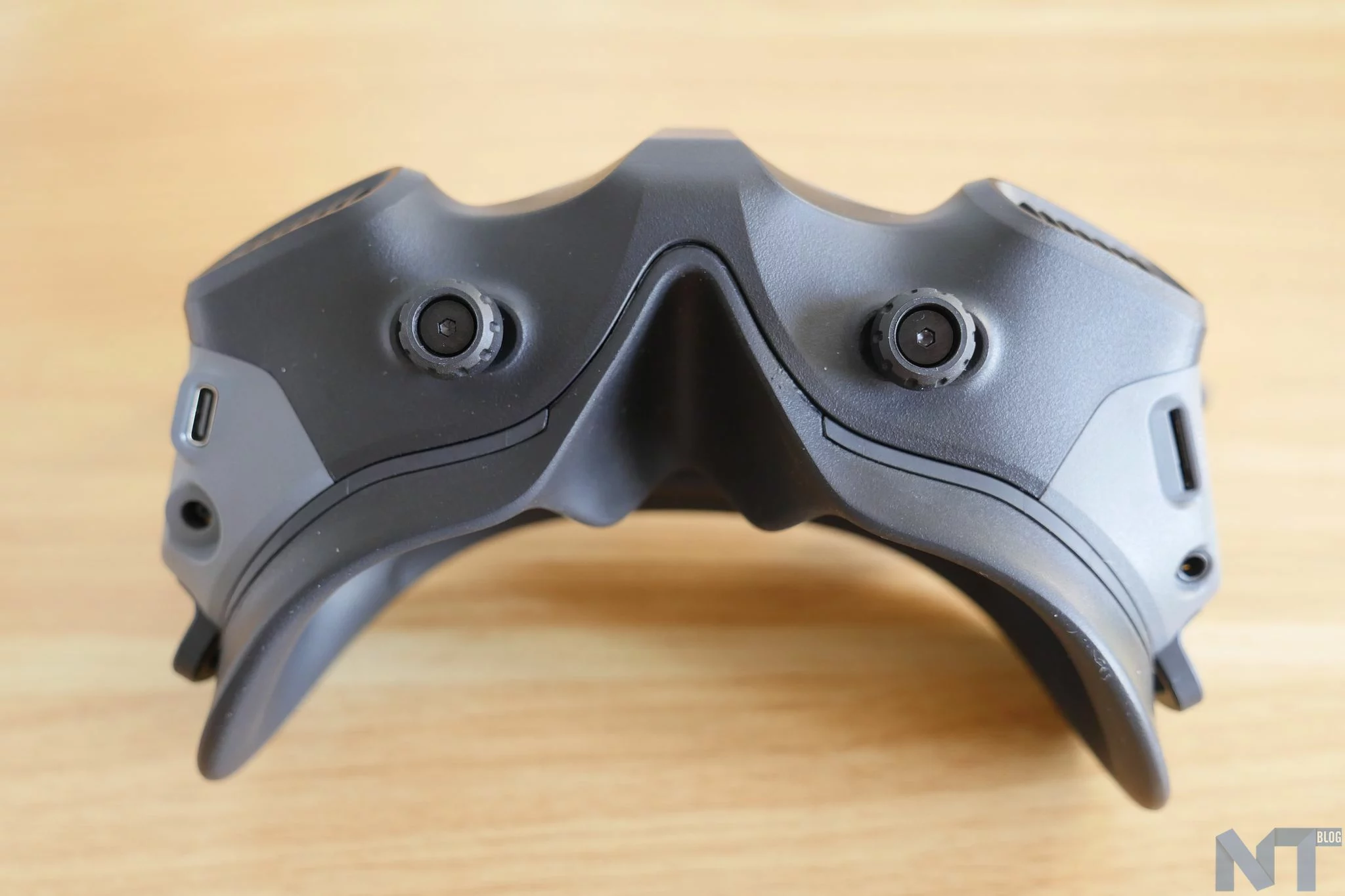 De l’autre côté des lunettes se trouvent le logement pour carte TF et une prise casque de 3,5 mm. Il convient de mentionner que les DJI Goggles 2 ont ajouté une fonction de projection d’écran sans fil, c’est-à-dire que vous pouvez utiliser les DJI Goggles 2 comme un dispositif de visualisation lorsque vous n’utilisez pas de drone. De plus, les DJI Goggles 2 disposent également de doubles haut-parleurs intégrés, ce qui est assez confortable pour regarder des vidéos lorsque vous ne les utilisez pas.