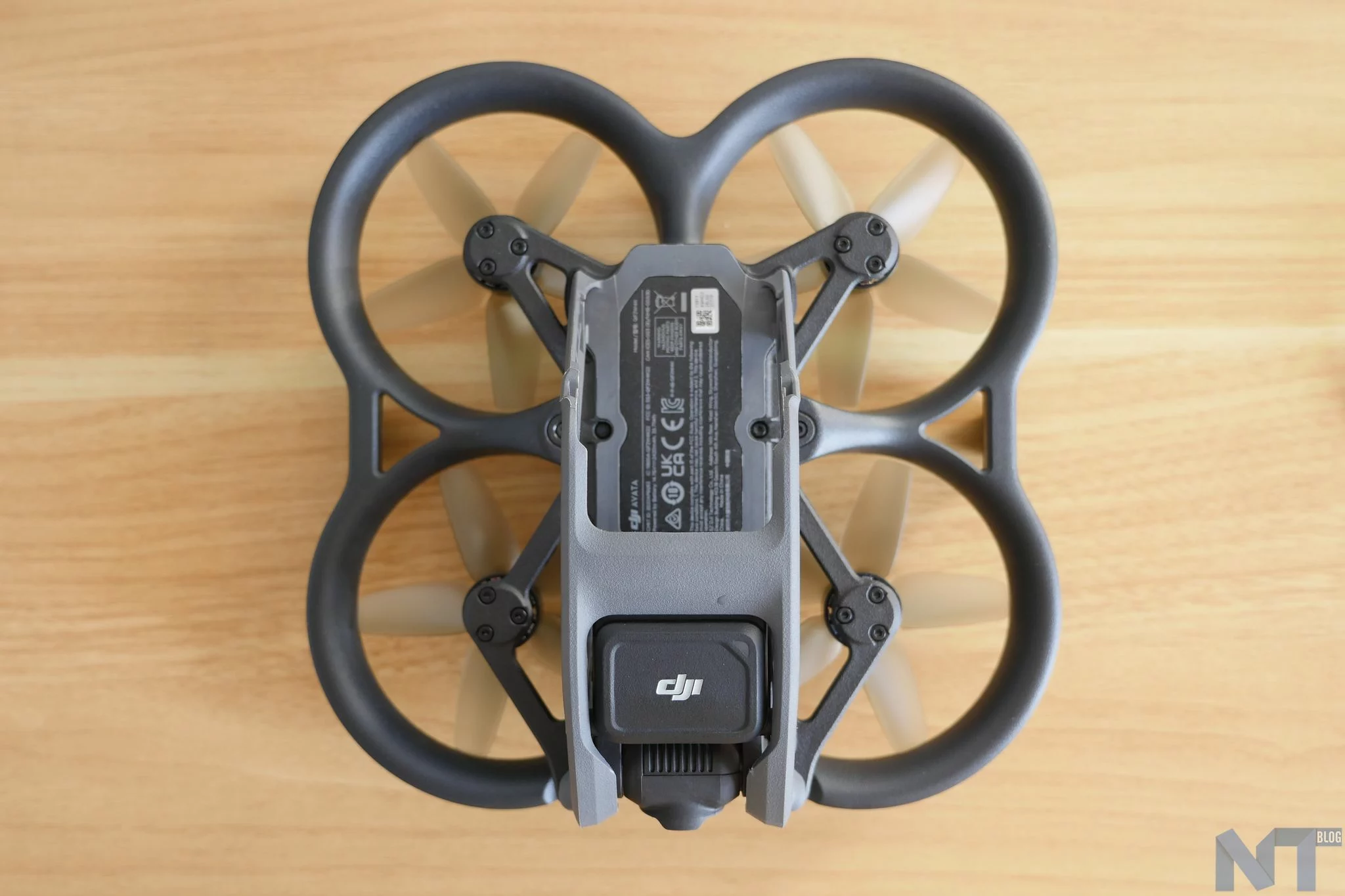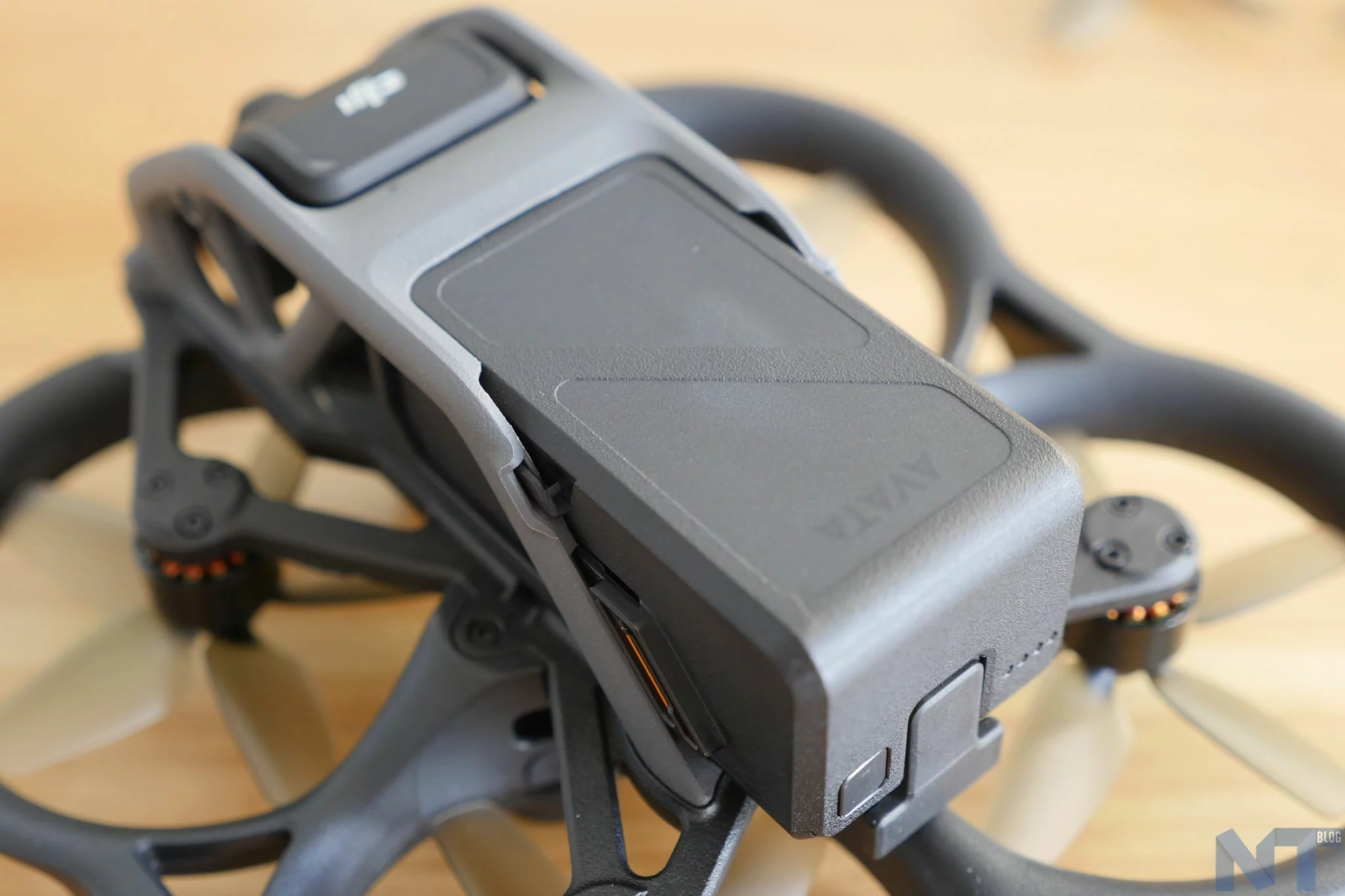 La structure générale du DJI Avata utilise la batterie, le contrôle de vol et le module de caméra placés au-dessus de l’hélice. De côté, vous pouvez voir que la majeure partie de l’espace du fuselage est principalement réservée à la batterie.