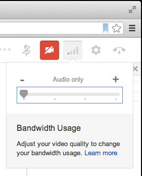 Pour être en mesure d’ajuster la bande passante d’une session Hangouts, la firme va lancer un curseur que vous pouvez ajuster la bande passante en fonction du débit de votre connexion. Ainsi, si vous êtes amené à faire du tethering et que la couverture 3G est très faible, ou encore que vous êtes à l’hôtel et que la connexion est bridée, et que vous avez besoin de parler avec vos amis, sachez que vous pouvez désormais choisir de démarrer un Hangouts au lieu d’autres services plus gourmands en bande passante.