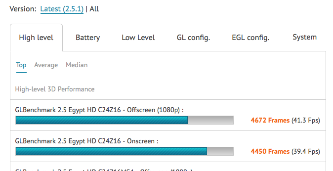 Concernant le reste du benchmark, le soit-disant S4 – SHV-E300S – n’a passé que deux tests en GLBenchmark 2.5, mais les résultats sont époustouflants. Les 41,3 images par seconde avec des hauts niveaux de performances 3D obtenues par “Egypt HD Offscreen” qui mesure la performance graphique de la puce en exécutant un environnement polygonal ludique, et le 39.4 Fps sur le “Offscreen” (hors écran) qui permet d’obtenir un rendu en HD 1080p, rendent tout à fait ridicule les résultats obtenus par le Galaxy S3 ou encore le Galaxy Note 2. Pendant ce temps, pas même le HTC Butterfly peut se vanter d’avoir les scores, coincé respectivement sur 29,7 et 28,1 Fps.